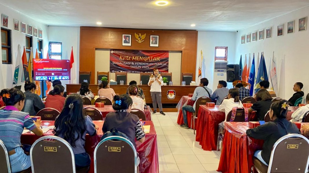 Atambua, kab-belu.kpu.go.id - Komisi Pemilihan Umum (KPU) Kabupaten Belu kembali menggelar kegiatan KPU Mengajar untuk yang ketiga kalinya bersama mahasiswa Sekolah Tinggi Ilmu Sosial dan Ilmu Politik (STISIP) Fajar Timur Atambua. Kegiatan ini dilaksanakan di kantor KPU Kabupaten Belu, pada Senin (15/12/2025) Kegiatan KPU Mengajar ke-3 ini diikuti oleh mahasiswa dan berlangsung dengan suasana interaktif. Pada kesempatan tersebut, Anggota KPU Kabupaten Belu, Herlince Emiliana Asa, selaku Ketua Divisi Perencanaan, Data dan Informasi, hadir sebagai narasumber dan memaparkan materi terkait Perencanaan serta Pemutakhiran Data Pemilih Berkelanjutan. Para mahasiswa terlihat antusias dalam sesi diskusi dan tanya jawab. Berbagai pertanyaan dan pandangan kritis disampaikan sebagai bentuk kepedulian mahasiswa terhadap proses demokrasi dan penyelenggaraan pemilu dan pemilihan. Melalui pelaksanaan KPU Mengajar yang ketiga ini, diharapkan kegiatan tersebut dapat menjadi sarana kolaborasi strategis antara KPU Kabupaten Belu dan dunia akademik dalam memperkuat pendidikan pemilih dan demokrasi. Selain itu, program ini diharapkan mampu menjadi wadah pembelajaran yang kreatif, kolaboratif, dan berkelanjutan dalam menumbuhkan kesadaran berdemokrasi di kalangan generasi muda.[parmaskpubelu gzl/foto nad/ed mrl]. ....
