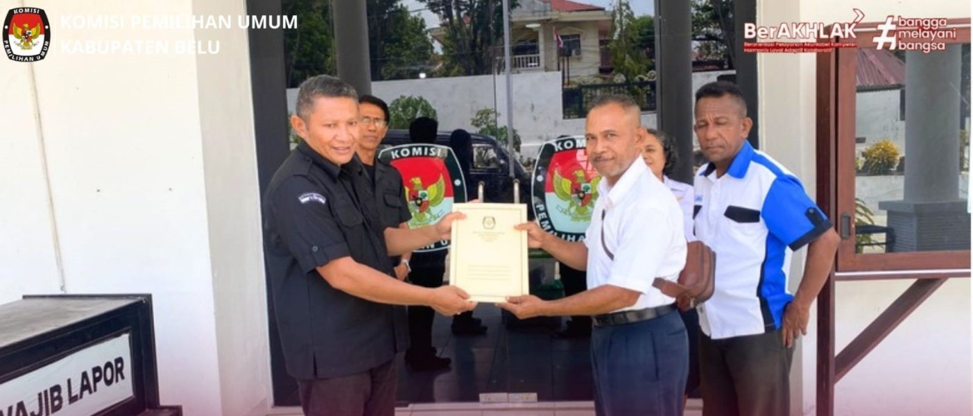 Atambua, kab-belu.kpu.go.id - Dalam upaya menjaga dan melestarikan dokumen-dokumen penting dalam penyelenggaraan Pemilu dan Pilkada Kabupaten Belu Tahun 2024, KPU Kabupaten Belu melaksanakan kegiatan penyerahan arsip form C Hasil Salinan Pemilihan Umum tahun 2024 dan Model C Salinan Pemilihan Bupati dan Wakil Bupati Belu Tahun 2024 secara resmi kepada Dinas Perpustakaan dan Kearsipan Kabupaten Belu pada Rabu, 8 Oktober 2025. Penyerahan tersebut sebagai bagian dari upaya penyelamatan arsip kepemiluan. Proses serah terima dilaksanakan di kantor KPU Kabupaten Belu dan diserahkan secara langsung oleh Plh. Ketua KPU Kabupaten Belu, Yoni Aryanto Neolaka didampingi Sekretaris KPU Kabupaten Belu Simon Arfaksad Lau dan diterima oleh Kepala Seksi Akuisisi, Preservasi dan Pengelolahan Arsip Dinas Perpustakaan dan Kearsipan Kabupaten Belu, Simon Johanes Bau. “Secara kelembagaan, kami menyampaikan apresiasi atas kerjasama yang ada karena hari ini kami dapat menyerahkan dokumen-dokumen negara kepada Dinas Perpustakaan dan Kearsipan Kabupaten Belu. Harapannya semoga dapat terarsipkan dengan baik dan dokumen yang diarsipkan ini kiranya dapat diakses dengan mudah ketika diperlukan” kata Yoni saat menyerahkan dokumen tersebut. Arsip yang diserahkan berupa Form C Salinan Pemilihan Umum DPRD Kabupaten Belu Tahun 2024 sejumlah 666 berkas dan Form C Hasil Salinan Pemilihan Bupati dan Wakil Bupati Belu Tahun 2024 sejumlah 374 berkas. Dengan adanya penyerahan dokumen ini, diharapkan dapat meningkatkan kualitas pengelolaan arsip yang baik, adanya pengamanan dokumen dari kerusakan dan kehilangan serta dokumen dapat diakses dengan mudah ketika diperlukan.[parmaskpubelu gzl/foto ndy/ed mrl].