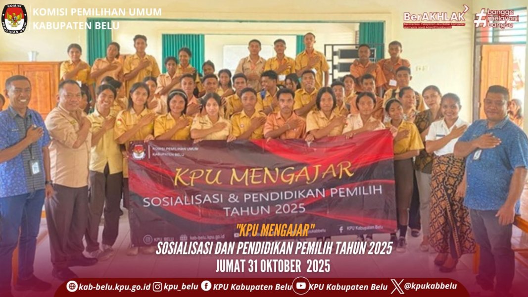 Atambua, kab-belu.kpu.go.id - Komisi Pemilihan Umum Kabupaten Belu kembali menggelar kegiatan “KPU Mengajar” di kampus STISIP Fajar Timur Atambua pada Kamis (30/10/2025), sebagai bagian dari upaya peningkatan pendidikan pemilih di kalangan mahasiswa. Pihak kampus yang diwakili oleh ketua jurusan Ilmu Pemerintahan, Donatus Sae, S. Fil, M.Si dalam sambutannya menyampaikan menyambut baik kegiatan "KPU Mengajar" yang dilaksanakan KPU Kabupaten Belu. "Kami memyambut baik kegiatan KPU Mengajar di kampus ini. Kiranya dapat memberikan pengetahuan kepada mahasiswa terkait pemilu dan pemilihan." Mewakili KPU Kabupaten Belu, Maria Gizela Lumis selaku ketua divisi sosialisasi, pendidikan pemilih, partisipasi masyarakat dan sumber daya manusia dalam sambutannya menyampaikan apresiasi kepada pihak kampus STISIP Fajar Timur Atambua atas terselenggaranya kegiatan “KPU Mengajar”. Kegiatan ini menjadi agenda rutin yang akan dilaksanakan oleh KPU Kabupaten Belu yang bertujuan untuk memberikan sosialisasi dan pendidikan pemillih di kalangan mahasiswa, pelajar dan masyarakat. "Kami menyampaikan apresiasi kepada pihak kampus STISIP Fajar Timur Atambua atas terselenggaranya kegiatan KPU Mengajar, melalui kegiatan ini kami ingin mahasiswa memahami bahwa dalam perhelatan pemilu atau pemilihan, kaum muda bukan hanya sekedar memberikan hak pilihnya, tetapi juga bagaimana kaum muda dapat berpartisipasi aktif dalam proses demokrasi itu sendiri. Selain itu, melalui kegiatan "KPU Mengajar" kami ingin memberikan pemahaman kepada kaum muda tentang pemilu dan pemilihan serta perannya didalam proses penyelenggaraan baik pemilu dan pemilihan di masa yang akan datang,” ujar Gizela. Kegiatan yang berlangsung di kampus tersebut diikuti oleh puluhan mahasiswa dari berbagai program studi. Dalam kegiatan tersebut, komisioner KPU Kabupaten Belu, Yoni A. Neolaka menyampaikan materi seputar teknis pemilu dan pemilihan serta pentingnya partisipasi pemilih dalam tahapan pemilu dan pemilihan. Selain penyampaian materi, kegiatan juga diisi dengan sesi diskusi dan tanya jawab interaktif. Para mahasiswa menunjukkan antusiasme tinggi dengan mengajukan pertanyaan-pertanyaan yang kritis selama kegiatan berlangsung. Sementara itu, perwakilan mahasiswa, Nardi Berek, menyampaikan apresiasi atas terselenggaranya kegiatan ini “Kami jadi paham tentang pemilu dan pemilihan. Semoga kegiatan seperti ini terus dilakukan oleh KPU Kabupaten Belu,” ujarnya. Melalui program “KPU Mengajar”, KPU Belu berharap dapat memberikan pemahaman tentang pemilu dan pemilihan, menumbuhkan kesadaran akan pentingnya demokrasi dan meningkatkan partisipasi pemilih pada pemilu dan pemilihan di masa mendatang.[parmaskpubelu gzl/foto ndy/ed mrl].