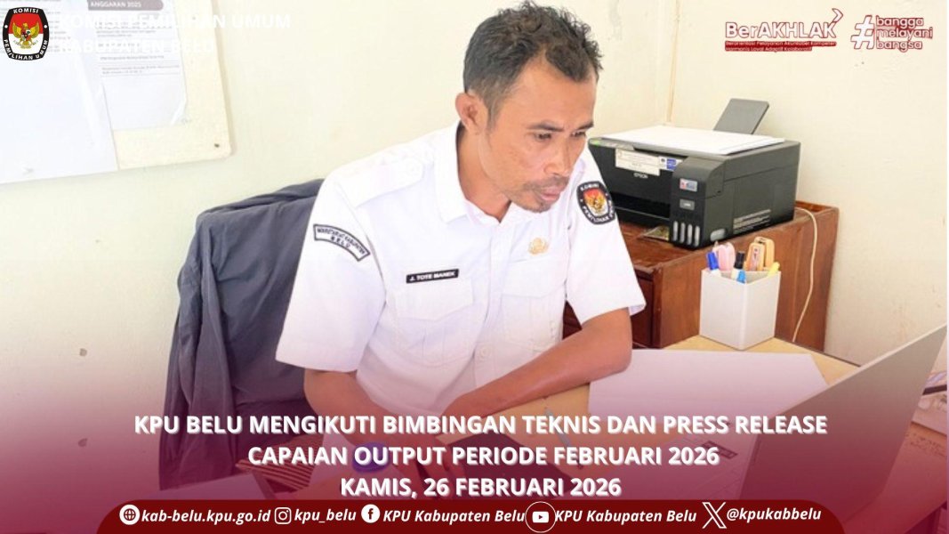 Atambua, kab-belu.kpu.go.id - Joseph Tote Manek, Staf Keuangan, Umum, dan Logistik KPU Kabupaten Belu mengikuti Bimbingan Teknis dan Press Release Capaian Output Periode Februari 2026, Kamis (26 Februari 2026) secara daring melalui aplikasi zoom meeting. Kegiatan dibuka oleh Kepala KPPN Atambua Mauritz C. R. Meta dalam sambutannya , Mauritz menekankan terkait capaian output yaitu pentingnya akurasi dan ketepatan waktu pelaporan data capaian output (Caput) oleh Satker, yang merupakan bagian krusial dari Indikator Kinerja Pelaksanaan Anggaran (IKPA) juga pelaporan yang tepat waktu (batas 5 hari kerja awal bulan) dan berkualitas yang sangat vital untuk pemantauan progres realisasi anggaran Narasumber dalam bimbingan teknis ini ialah Kepala Seksi Pencairan Dana dan Manajemen Satuan Kerja (PDMS) Taufiq Hidayat , Dalam materinya beliau menyampaikan bahwa capaian output merupakan indikator utama dalam penilaian kinerja pelaksanaan anggaran (IKPA) yang mengukur efektivitas, efisiensi, dan ketepatan waktu suatu satuan kerja (satker) dalam menghasilkan keluaran fisik atau jasa dari anggaran yang digunakan. Ini menjadi alat monitoring evaluasi untuk memastikan belanja APBN berkualitas dan akuntabel. Kegiatan dilanjutkan dengan sesi diskusi dan tanya jawab.[parhubmassdmkpubelu]
