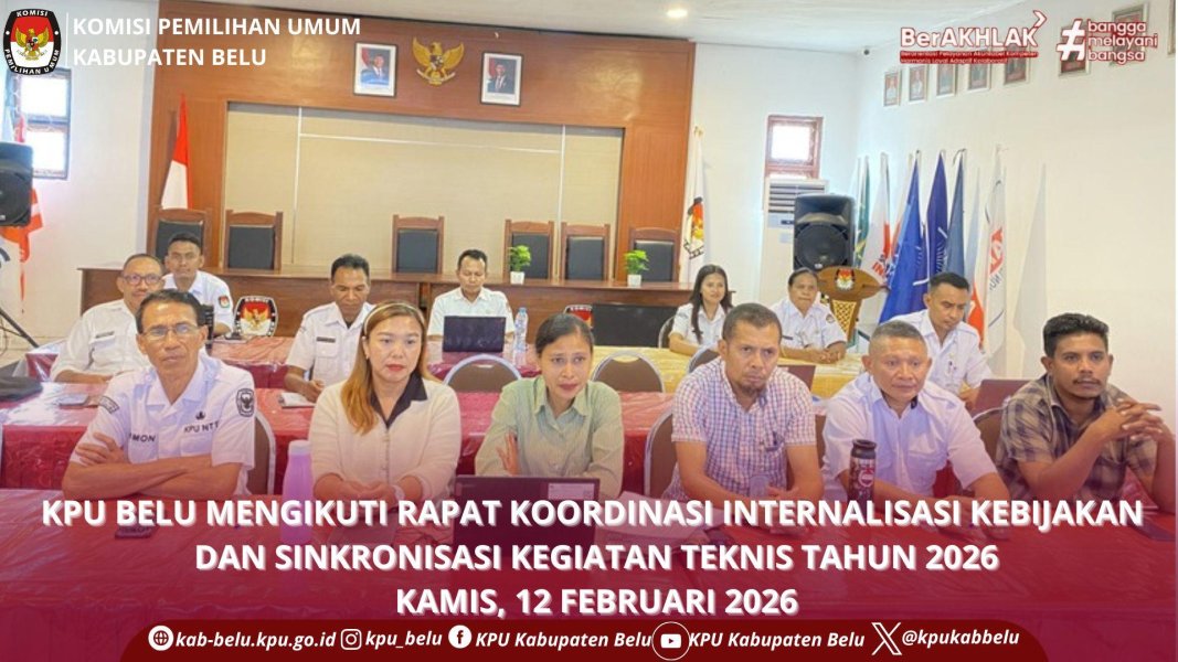 Atambua, kab-belu.kpu.go.id - KPU Kabupaten Belu menggelar Rapat Pleno Rutin yang berlangsung di Ruang Rapat KPU Kabupaten Belu pada Senin (23/2/2026) Rapat pleno ini dipimpin oleh Ketua KPU Kabupaten Belu, Yohanes Seven A. Palla dan dihadiri oleh para Anggota KPU Kabupaten Belu, Herlince E. Asa, Maria Gizela Lumis dan Gregorius Mali Lau, Sekretaris, Simon Arfaksad Lau, para Kepala Subbagian, pejabat fungsional serta notulis. Dalam arahannya membuka rapat pleno rutin, Seven menyampaikan bahwa seluruh kegiatan yang telah diagendakan pada minggu sebelumnya agar dapat ditindaklanjuti, sementara perencanaan yang masih tertunda dapat dijadwalkan kembali. Oleh karena itu, komunikasi dan koordinasi antar subbagian menjadi hal yang penting untuk dilakukan guna memastikan seluruh pekerjaan dapat diselesaikan secara tuntas. Rapat pleno rutin tersebut membahas sejumlah agenda penting, antara lain Pencocokan dan Penelitian Data Pemilih Terbatas (Coktas) Tahun 2026, Pemutakhiran Data Pemilih Berkelanjutan Tahun 2026, Pelaksanaan Podcast dan Program KPU Mengajar, Program Safari Demokrasi Partisipatif (SeDap) Ramadhan, Tausiyah Demokrasi Partisipatif (TaDarus) Ramadhan , Pengelolaan Website dan Media Sosial, Pemutakhiran Data Partai Politik Berkelanjutan Tahun 2026, FGD Penataan Daerah Pemilihan serta Sistem Pengendalian Intern Pemerintah (SPIP).[parhubmassdmkpubelu]