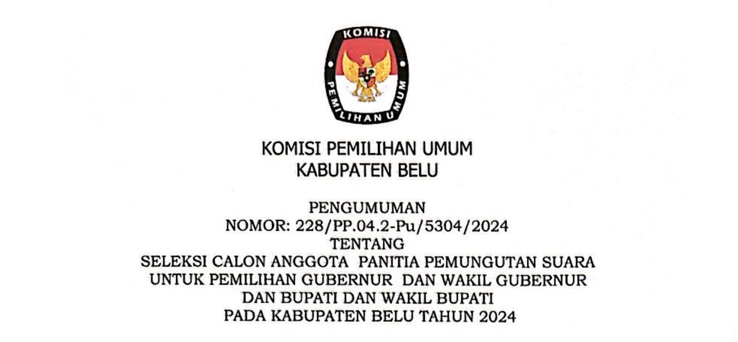 Pengumuman Nomor 235/PL.02.2.PU/5304/2024 tentang Calon Terpilih Anggota Dewan Perwakilan Rakyat Daerah Kabupaten Belu Dalam Pemilihan Umum Tahun 2024