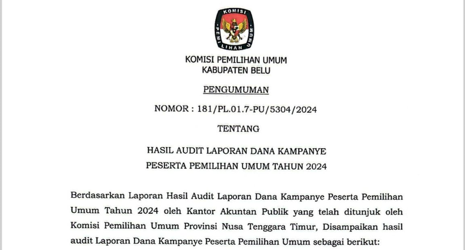 Hasil Audit Dana Kampanye Peserta Pemilihan Umum Tahun 2024 dapat dilihat disini...