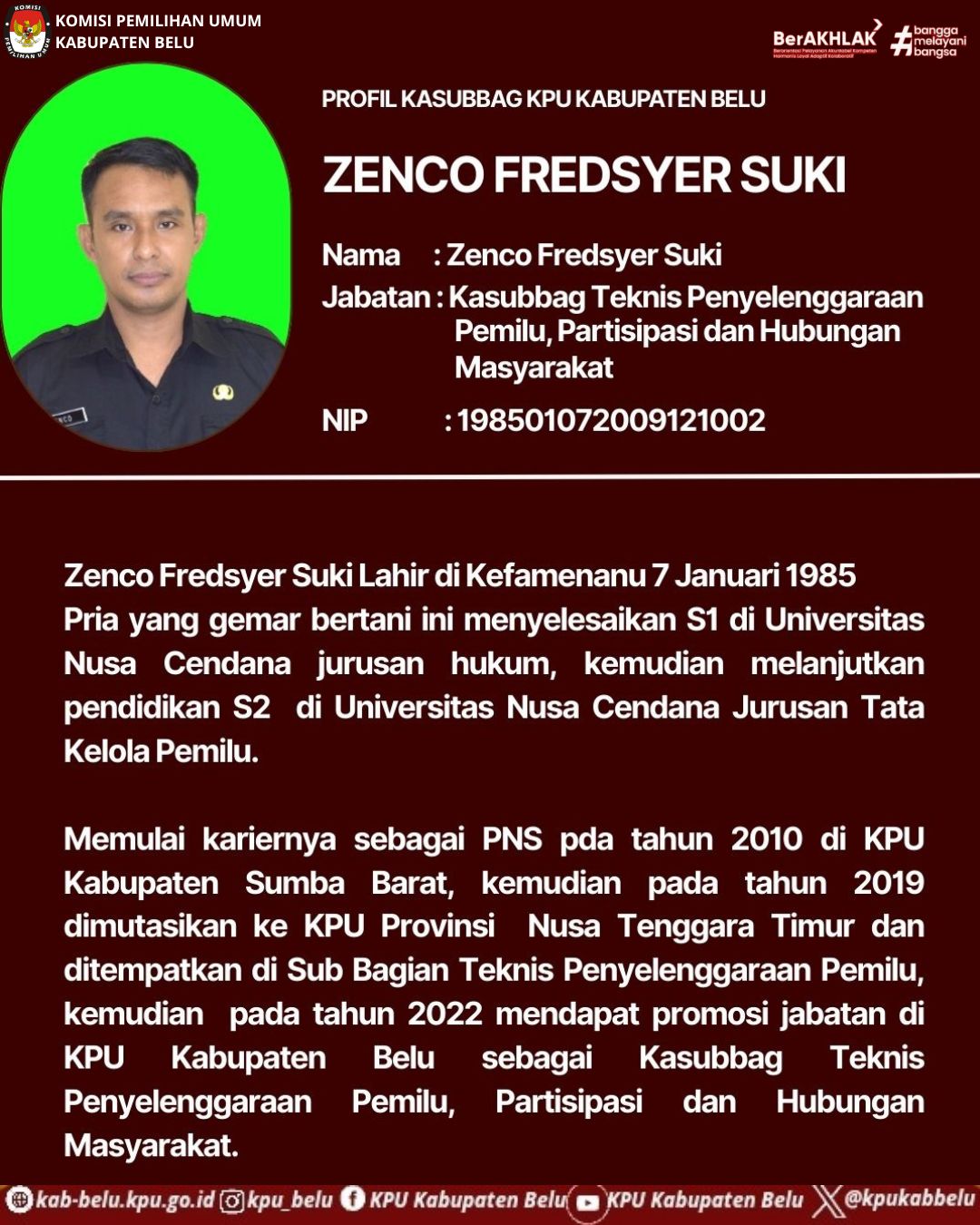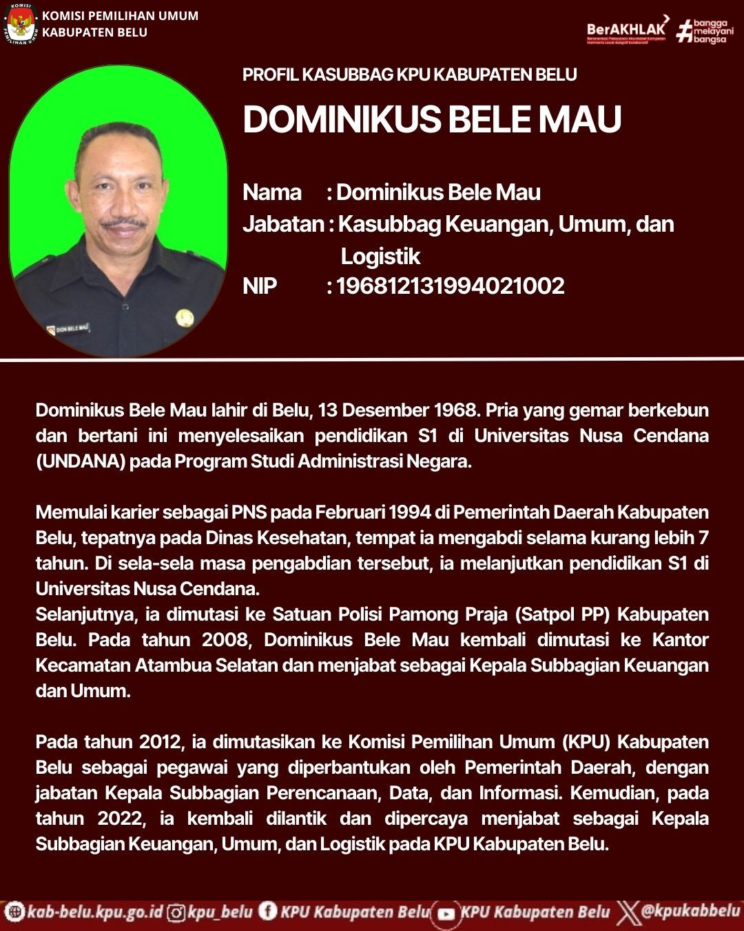 Profil Sekretaris KPU Kabupaten Belu